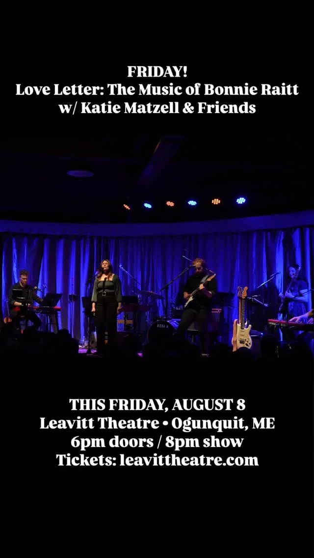 Katie Matzell & Friends celebrate the music of the legendary Bonnie Raitt, Katie’s favorite artist of all time and greatest musical influence. Katie’s nine-piece band of veteran musicians from Portland, Maine play a variety hits, deep cuts, ballads, and blues that span Raitt’s illustrious career. They perform these songs with deep respect for their original album arrangements, expert songwriting, and nostalgic sounds across the decades.